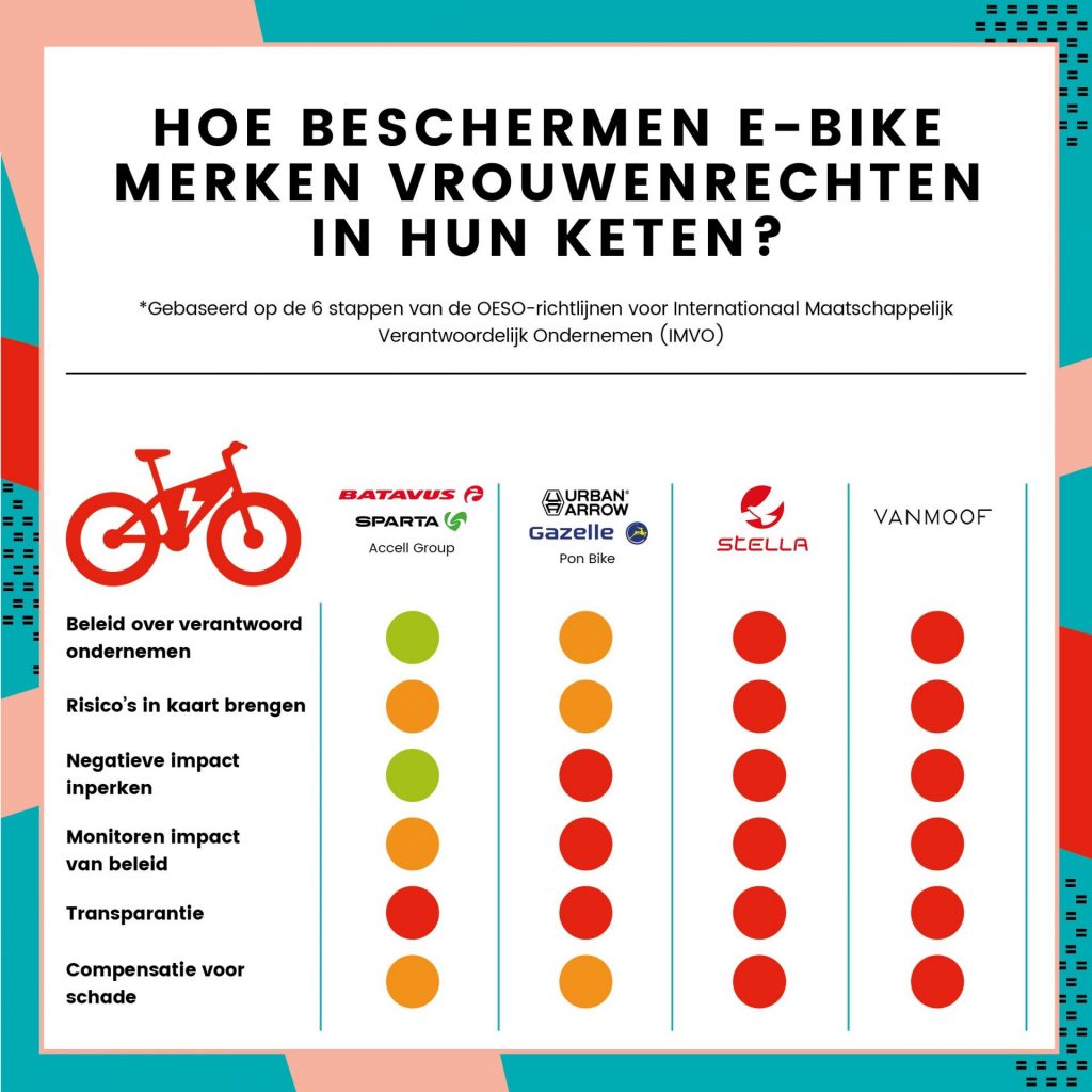 Hieronder zie je in één oogopslag hoe de merken (geen) rekening houden met vrouwenrechten in hun productieketens: